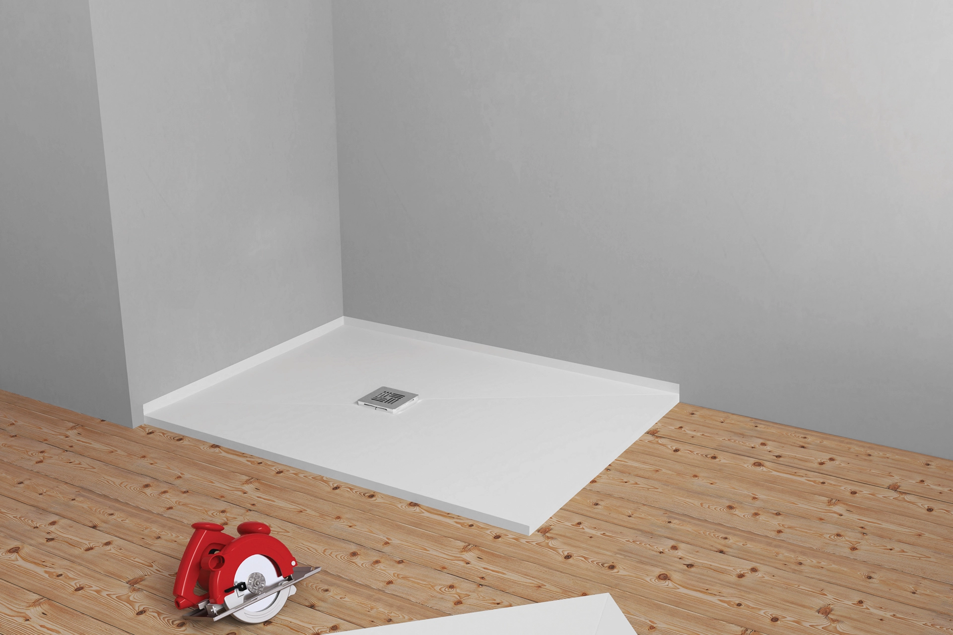 Aqua4ma Evolution shower decks can easily be trimmed and shaped using a hand or circular saw.