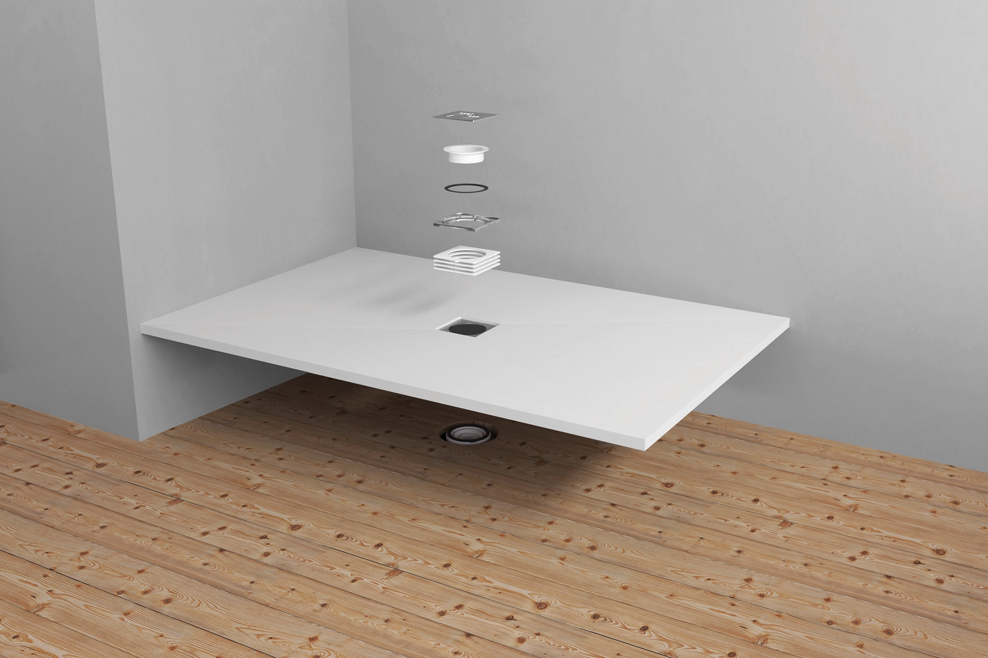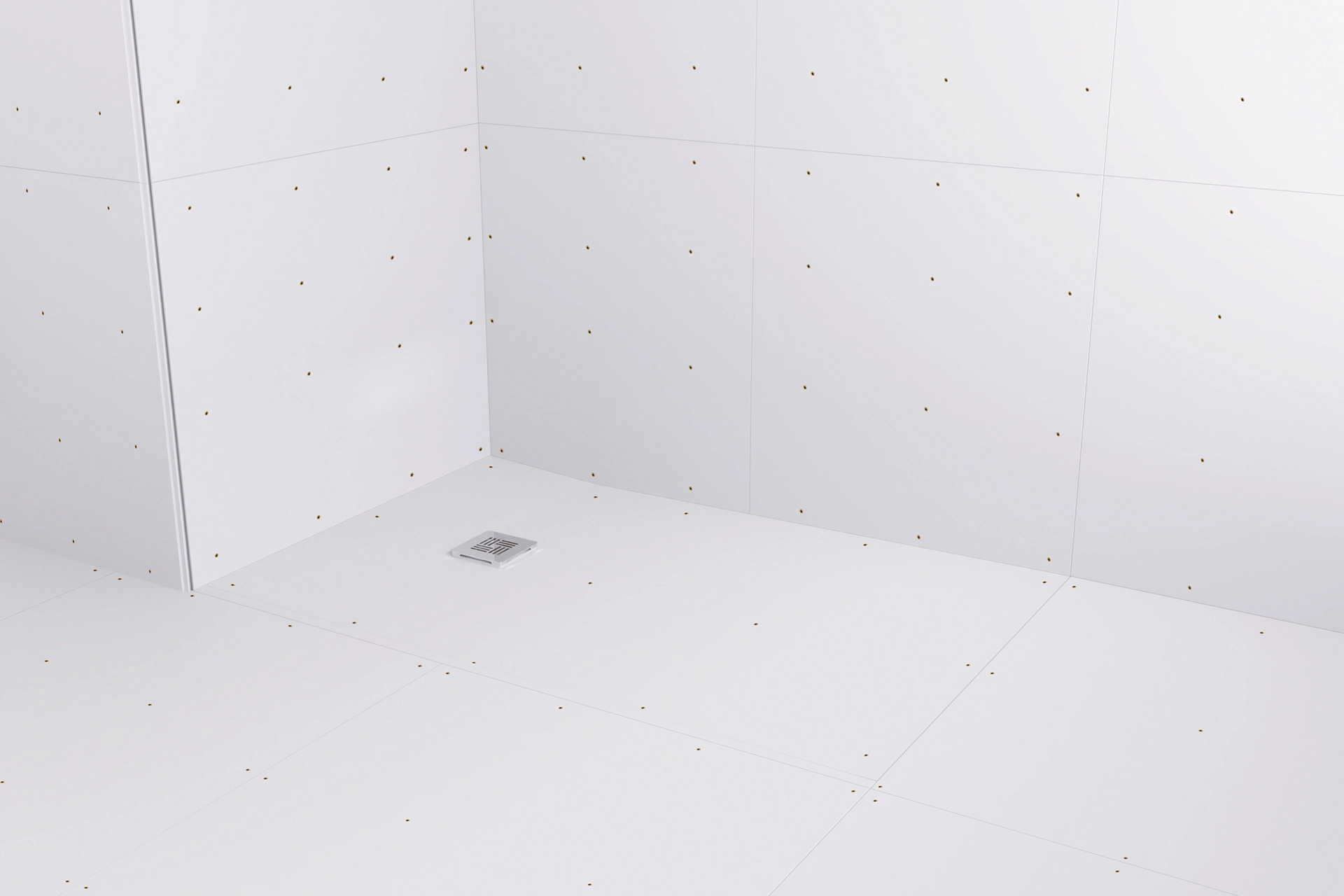 Aqua4ma Evolution Shower Deck with a shower waste located in the centre.  Rigid, waterproof, shower decks with a low profile waste making them ideal for use with microcement. Recognised for their ease of fitting and reliability. The decks can be screwed to without any washers as the material self-seals around the screws. Aqua4ma decks can also be glued to solid floors and walls using flexible tile adhesive.